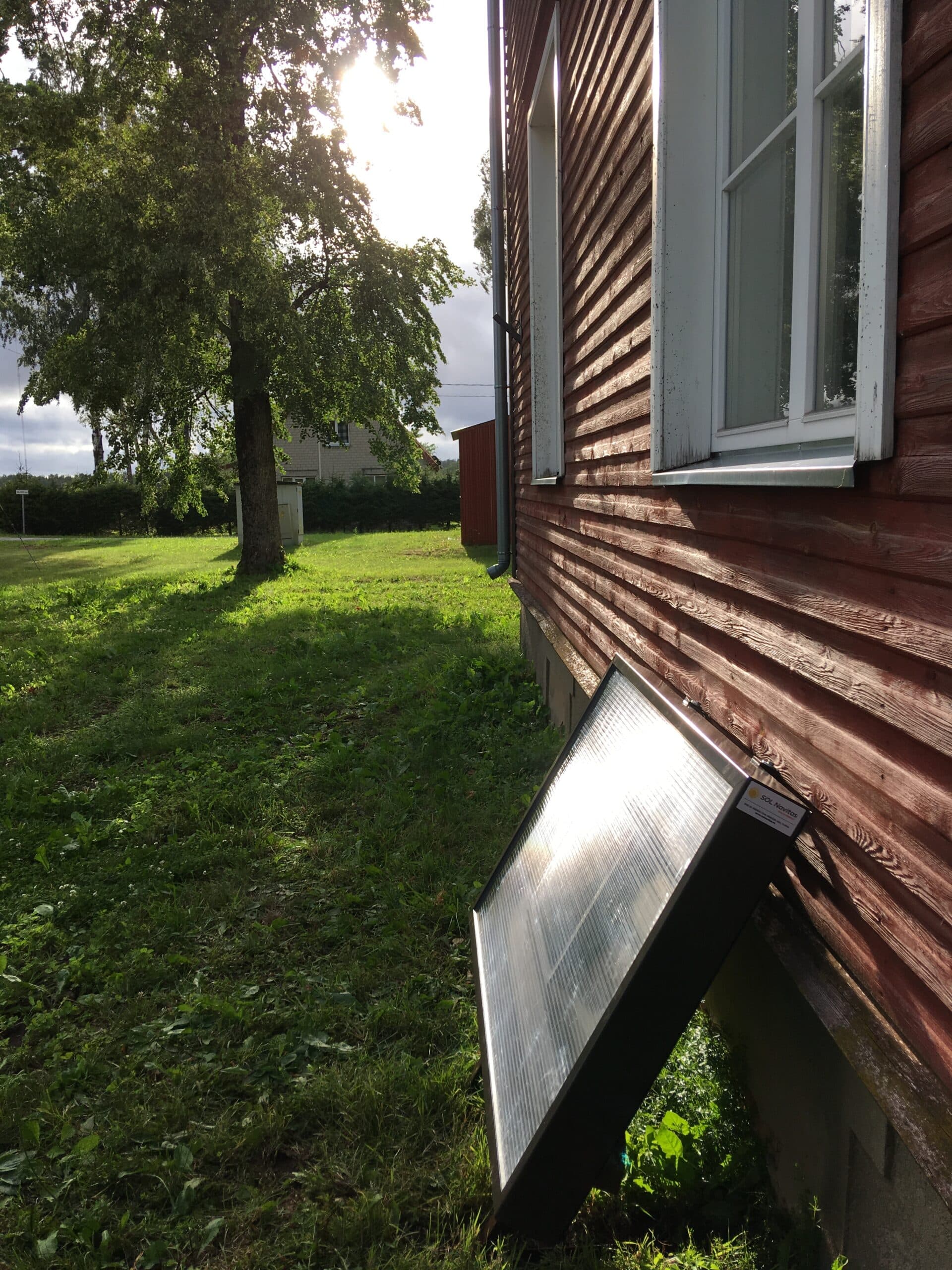 The cellar of the Kihlepa community centre was fitted with a solar-air heating panel so that local residents could store their preserves there in winter. Previously, the cellar was too humid, but now the sun can do its job and create the right conditions for long-term storage.